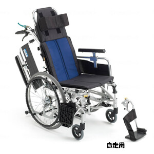 座位を保持するために、利用者の身体や障害の特性に応じて、さまざまな部分の調節が可能な車椅子です。ティルトとは、背もたれとシートの角度を保ったままシートの角度を調節する機能、リクライニングとは、背もたれの角度を調節する機能をいいます。
