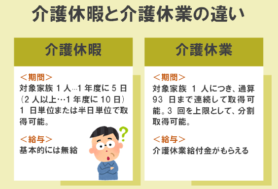 | 介護休暇 | 介護休業 |