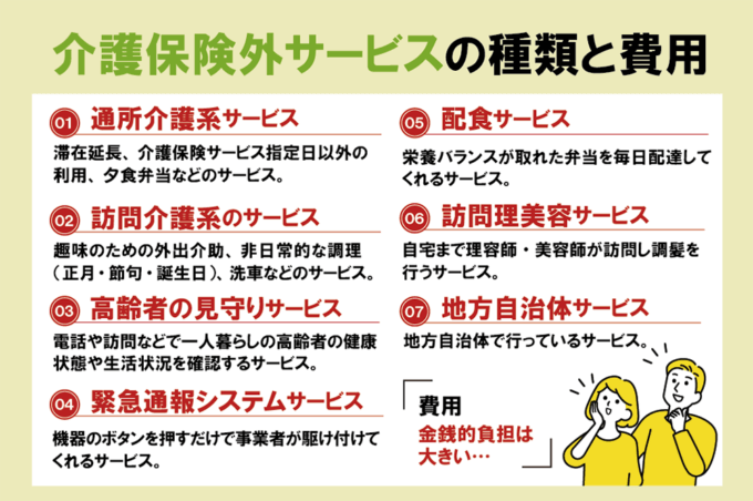 それでは、介護保険外サービスを一つひとつ確認していきましょう。