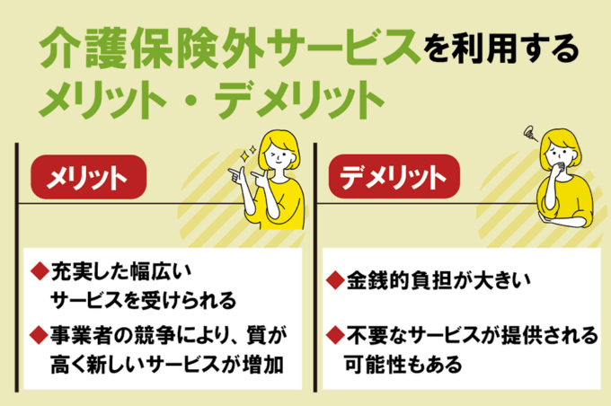 介護保険外サービスの利用には以下のようなデメリットがあります。