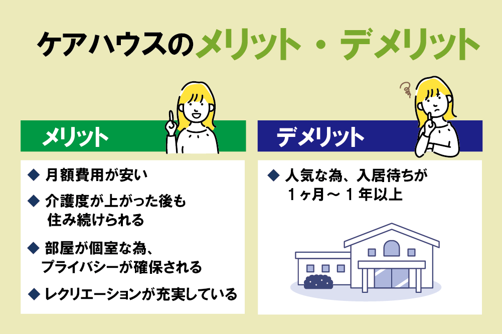 ケアハウスに入居するメリットとデメリットは、以下の通りです。