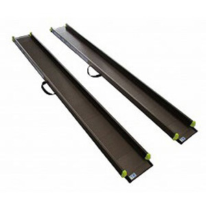 スロープが一枚の板でできているタイプです。安定感があり、電動三輪車やワゴンなどにも対応できます。一枚板であるため、介護者が車椅子を押しながら一緒にスロープをのぼれるのもメリットといえるでしょう。1人で車椅子を操作できず、常に介護者に押してもらわなければならない方に向いています。また、電動三輪車や四輪車を普段から使用している方にも適したタイプです。