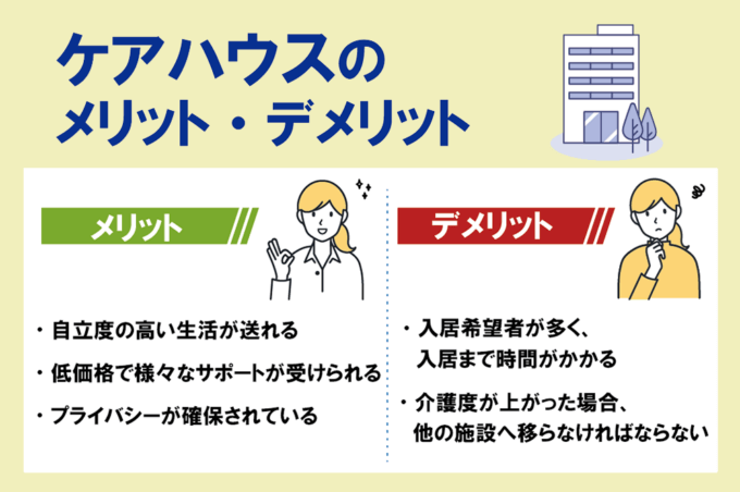 この章では、ケアハウス入所を検討する際に確認しておきたいメリットとデメリットの情報をご紹介します。