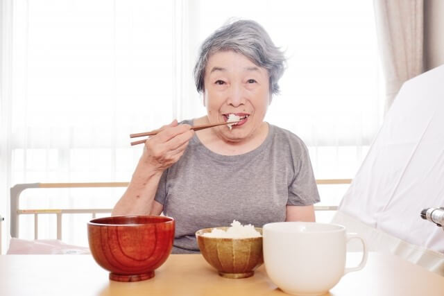 特に誤嚥性肺炎が起こりやすい高齢者は、誤嚥をしないで食事するために食べ方を工夫しましょう。誤嚥しにくい食事を選ぶことも、誤嚥性肺炎の予防につながります。例えば焼き魚や焼きのりなどのぱさぱさした食感のものは誤嚥しやすいです。また、ゴボウやパイナップルなどの繊維質の食べ物、酢の物などの酸っぱい食べ物も、誤嚥しやすいでしょう。飲み込みにくい食事はできるだけ避け、食べやすく飲み込みやすい食事を選ぶようにしてください。