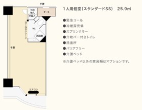 通常の老人ホームは居室面積が18㎡程度に対し、高級老人ホームは40〜50㎡前後が主流です。