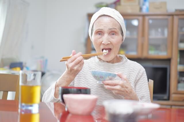 高齢者が食事をしているときは、家族が見守ることが大切です。食事時に、むせていないか、飲みにくくしていないか確認しましょう。