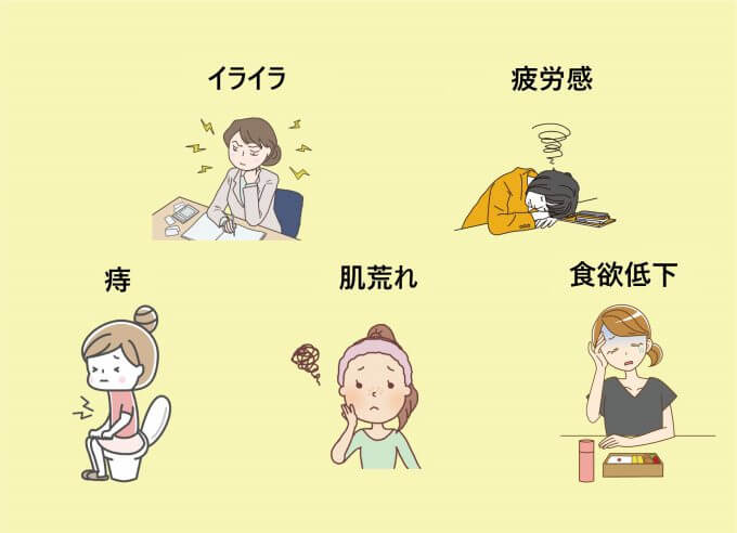 腸が健康に動いていることは精神的な健康に直結します。便が腸内に溜まっている不快感が日常の不快感にもつながり、イライラしやすくなったり、気持ちが不安定になったりします。便が出ないことで、それがまたストレスになり悪循環を引き起こします。